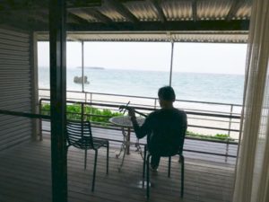 海岸線を走っていた時に、青い海なのだが、ところどころ赤土が流れ出ているような、水の流れが滞ってしまっているような、そんな景色をみた。