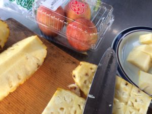 - マンゴーとパイナップルが朝食