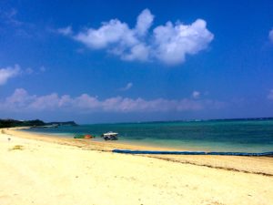 - 宿を後にして、車ですぐの今帰仁ウッパマビーチでのんびり海水浴