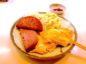 - 国際通りをフラフラあるいて、食堂「みかど」でポークタマゴ定食をいただく